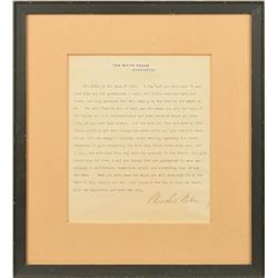 World War I-dated typed statement as president, one page, 6.5 x 7.5, White House letterhead, circa 1917. In full: "The Bible is the word of lif...