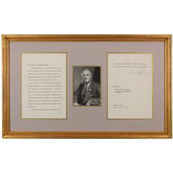 DS as president, two pages, 7.5 x 11, April 20, 1939. A document issued “to the Senate of the United States.” In part: “I transmit herewith a conventi