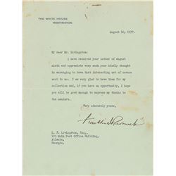TLS, one page, 7 x 9, White House letterhead, August 10, 1937. Letter to L. F. Livingston at the Main Post Office Building in Atlanta, in full: &quo...