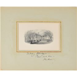 Handsome engraving of the White House, 6 x 4, displayed below the original 11.25 x 9.5 presentation mat, signed and inscribed in black ink as presiden