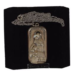 Sterling silver Sacred Heart medallion and necklace gifted to President-elect John F. Kennedy and Jacqueline Kennedy upon the birth of their son John