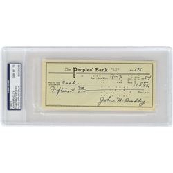 The People's Bank check, 6.25 x 2.75, filled out and signed by Bradley, "John H. Bradley," payable to Cash for $15, July 3, 1954. Enca...