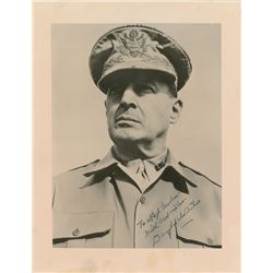 Striking matte-finish 8.5 x 11 portrait of General MacArthur in uniform, signed and inscribed in fountain pen, "To M/Sgt. Gordon, With best wis...