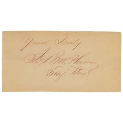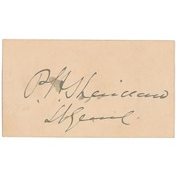Ink signature, "P. H. Sheridan, Lt. General,” on an off-white 3 x 1.75 card. In fine condition, with old mounting remnants on the reverse.