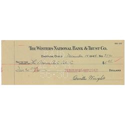 The Winter National Bank & Trust Co. check, 8.5 x 3, filled out in another hand and signed by Wright, payable to The Brown Auto Sales Co. for $5...