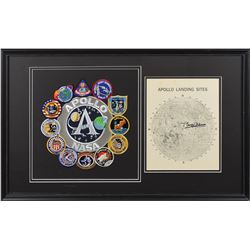Uncommon Apollo Landing Sites lunar map, 8.25 x 10.5, indicating the landing sites of all six successful Apollo missions, signed in black felt tip by