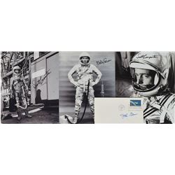 Four items: an FDC postmarked February 20, 1962, the launch day of the Friendship 7 spacecraft, signed in blue felt tip by John Glenn; and three semi-
