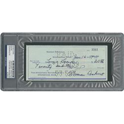 Personal check, 6.25 x 2.75, filled out and signed by Norman Rockwell, payable to assistant and close friend Louis Lamone for $20, January 16, 1959. E