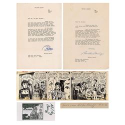 Four items, including: an original hand-inked three panel Steve Canyon comic strip by Milton Caniff, 23 x 7.25, signed and inscribed in the upper bord