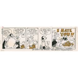 Superb original hand-inked four panel Popeye comic strip by Bud Sagendorf, 17.75 x 5.75, signed and inscribed in the lower border in black ink, “Bes’