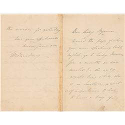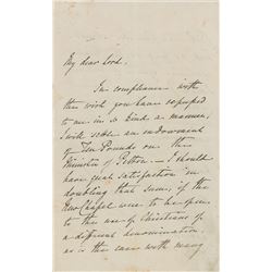 Wife (1792–1860) of poet George Gordon Byron, commonly known as Lord Byron. ALS signed “A. I. Noel Byron,” three pages on two adjoining sheets, 4.5 x