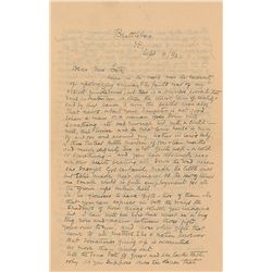 ALS, three pages on two adjoining sheets, 4.5 x 7, September 10, 1892. Lengthy letter to author and illustrator Mary Hallock Foote, known for her stor