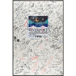 Fantastic color 23.5 x 35.75 poster celebrating the 1996 concert year at the Riverport Amphitheatre in Maryland Heights, Missouri, signed in various c