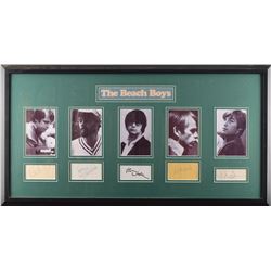 Ink signatures of Carl Wilson, Mike Love, Brian Wilson, Al Jardine, and Dennis Wilson on individual slips and cards, nicely double-matted and framed t