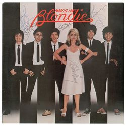 Parallel Lines album by Blondie, signed on the front cover in blue or black ballpoint by Debbie Harry, Chris Stein, Jimmy Destri, Frank Infante, Nigel