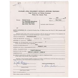 DS, one page, 8.5 x 11, March 17, 1971. Standard AFTRA network television engagement contract in which James Brown agrees to perform on The Tonight Sh