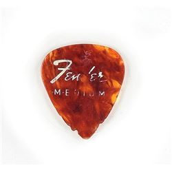 A mottled brown medium Fender guitar pick, and a russet-tone mandolin pick, both personally owned and stage-used by Clarence White. In overall fine co