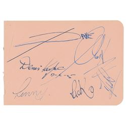 Ink signatures of Dave Clark, Mike Smith, Lenny Davidson, Rick Huxley, and Denis Payton on a peach-colored 4.75 x 3.5 album page. In very good to fine