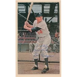 Color vintage 3.25 x 5.5 magazine photo of Hodges taking batting practice, signed and inscribed in blue ballpoint, "To Phil, Best Wishes, Gil H...
