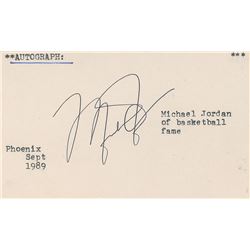 Desirable ballpoint signature, "Michael Jordan,” on an off-white 5 x 3 card, with typed collector's notation dating the signature to Septem...