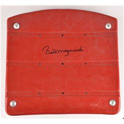 Original red seat back from Three Rivers Stadium in Pittsburgh, 16 x 15.5, prominently signed in black felt tip by Pirates legend Bill Mazeroski. In v