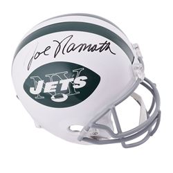 Full-size official Riddell New York Jets replica football helmet signed on the upper shell in black felt tip by Joe Namath. In fine condition. Accompa