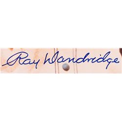 Vintage fountain pen signature and inscription, "Thank you P. M., Best wishes, R. J. 'Bob' Wallace,” on a lined off-white 5 x 3 card, a...