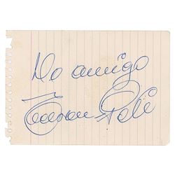 Ballpoint signature, "Do amigo, Edson Pele,” on an off-white 4.25 x 3 sheet of notebook paper. In fine condition. Accompanied by a certificate ...