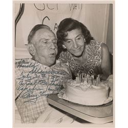 Glossy 8 x 10 photo of Stengel blowing out his birthday candles from a hospital bed, his wife Edna looking on, signed and inscribed in black felt tip,