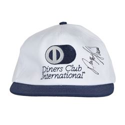 White "Diners Club International" baseball cap with an adjustable strap, signed near the logo in black felt tip by Payne Stewart. In fine ...