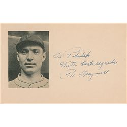 Vintage ballpoint signature and inscription, "To Philip, With best regards, Pie Traynor,” on an off-white 5.75 x 3.75 card bearing an affixed p...