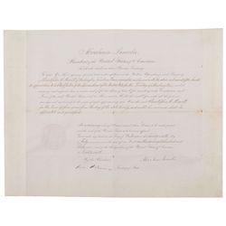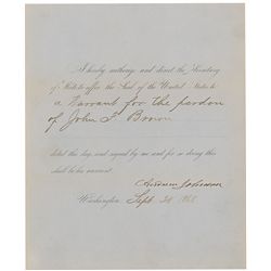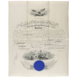 Partly-printed DS as president, one page, 8 x 9.5, September 30, 1868. President Johnson directs the secretary of state “to affix the Seal of the Unit