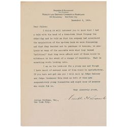 TLS, one page, 7.25 x 10.5, Fidelity and Deposit Company of Maryland letterhead, December 2, 1924. Letter to Julian Goldman, in part: “I had a talk wi