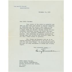 TLS as president, one page, 7 x 8.75, White House letterhead, September 13, 1952. Letter to Rabbi Samuel Thurman, in part: “Your letter of the sixth i