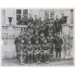 Uncommon official matte-finish 10 x 8 US Army photo of Truman with officers in the 129th Artillery Regiment during World War I, signed and inscribed v