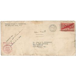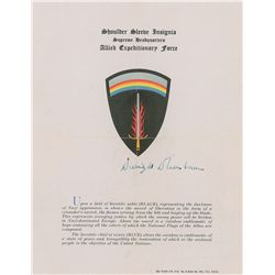 War-dated printed presentation sheet, signed in fountain pen, one page, 8 x 10.5, no date but postmarked May 27, 1945. The page is headed “Shoulder Sl