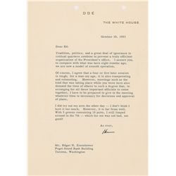 TLS as president signed “Ike,” one page, 7 x 10.25, White House letterhead, October 30, 1953. Letter to his older brother Edgar Eisenhower. In part: “