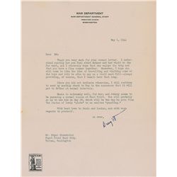 War-dated TLS signed “Dwight,” one page, 8 x 10.5, War Department letterhead, May 1, 1942. Letter to his older brother Edgar Eisenhower. In part: “I u