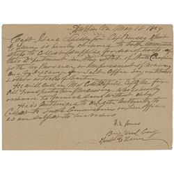 Fantastic ALS, one page, 5.25 x 9.25, January 5, 1861. Letter to Lieutenant George L. Campbell. In part: “I am fully sensible of the dangers that bese