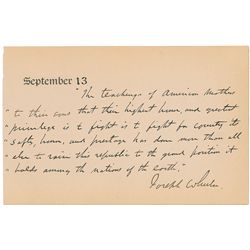 ALS signed “W. T. Sherman, General,” three pages on two adjoining lightly-lined sheets, 5 x 8, Headquarters, Army of the United States letterhead, Oct