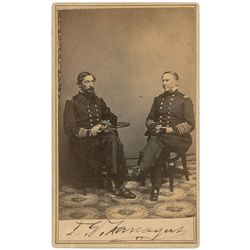 Choice 2.5 x 4 carte-de-visite bust portrait of Meade, boldly signed below the vignette image in black ink, “Geo. G. Meade, Maj Gen’l USA.” Published