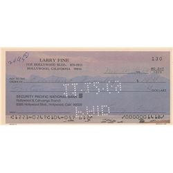 Personal check, 6 x 2.75, filled out and signed by Fine, “Larry Fine,” payable to Eisenberg & Eisenberg for $14.18, November 10, 1969. In fine c...