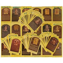Collection of 65 gold Hall of Fame plaque cards, each signed on the front in felt tip or ballpoint by the Hall of Famer pictured, including: Hank Aaro