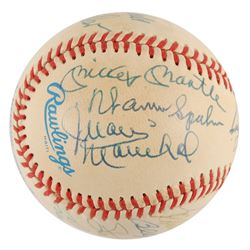 Official Rawlings American League (Brown) baseball signed in ballpoint on the sweet spot and side panels by 13 Hall of Famers, including: Mickey Mantl