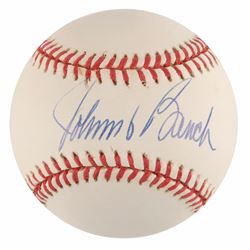 Five official Rawlings National League (White) baseballs, each signed in blue ballpoint on the sweet spot by Bench. In overall fine condition.