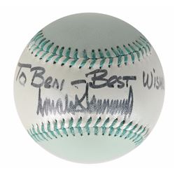 Official Spinneybeck baseball signed and inscribed in black felt tip on the sweet spot, “To Ben—Best wishes, Donald J. Trump.” In fine condition.