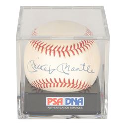 Official Rawlings American League baseball signed in blue ballpoint. Encapsulated in a plastic PSA/DNA authentication and grading holder, evaluating t