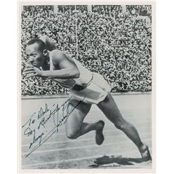 Glossy 8 x 10 photo of Owens sprinting at the 1936 Olympic Games, signed and inscribed in black felt tip, “To Dale, My best to you always, Jesse Owens