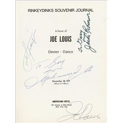 Remarkable program from a dinner–dance honoring Joe Louis, held at the Americana Hotel in New York on November 28, 1971, 8.5 x 11, forty pages, signed