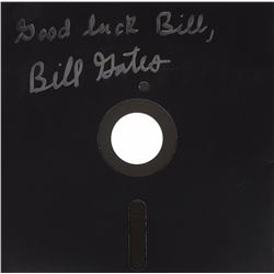 Scarce 8-inch floppy disc, signed and inscribed in silver ink, “Good luck Bill, Bill Gates.” In fine condition.